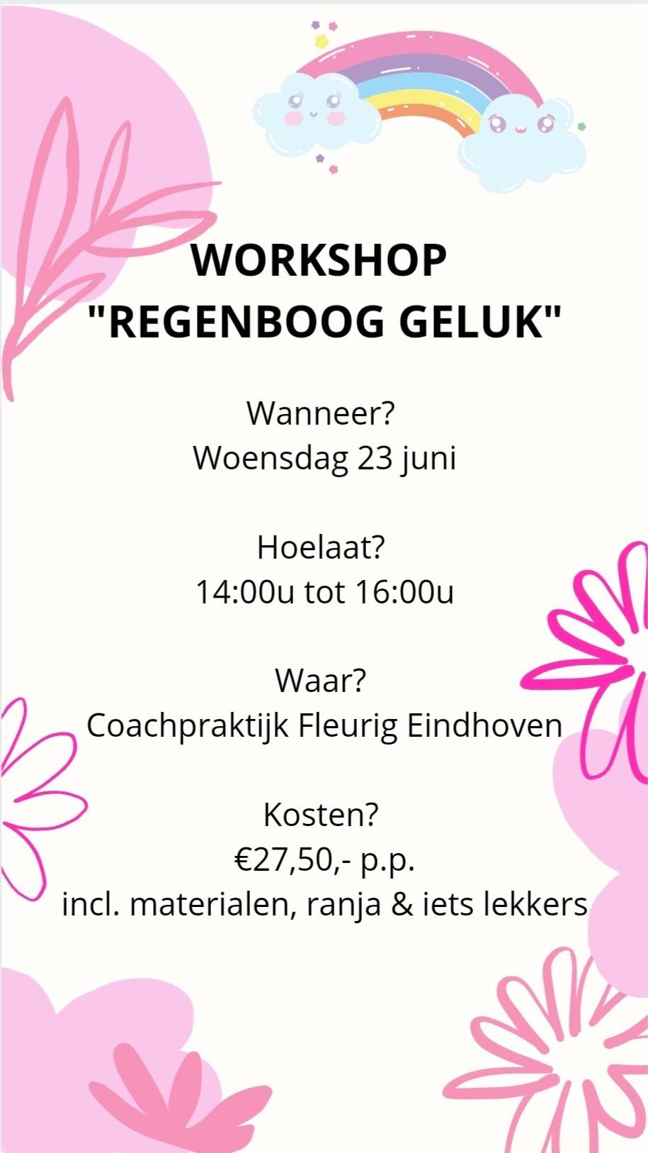 Woensdag 23 juni: workshop "Regenboog Geluk"